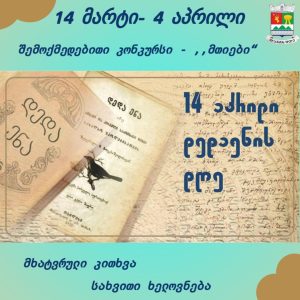14 აპრილს დედაენის დღისადმი მიძღვნილი ღონისძიების ფარგლებში გაიმართება გამარჯვებული კონკურსანტების დაჯილდოება.